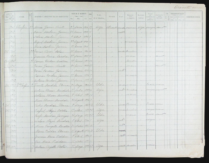 Hojas declaratorias por familias y Padrón de habitantes, 1877