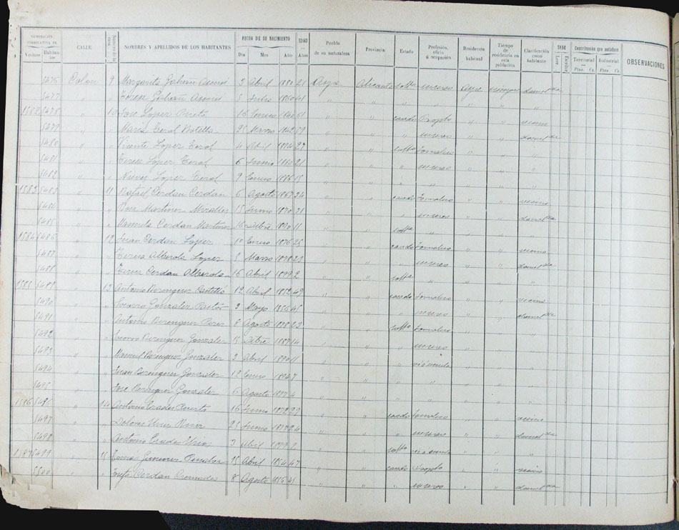Hojas declaratorias por familias y Padrón de habitantes, 1877