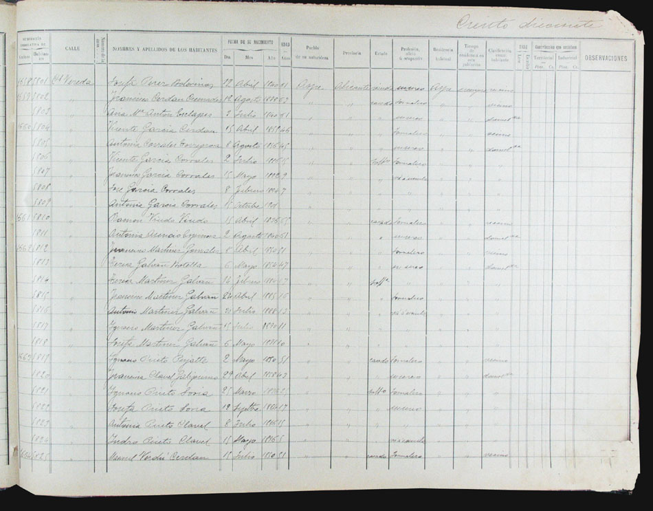 Hojas declaratorias por familias y Padrón de habitantes, 1877