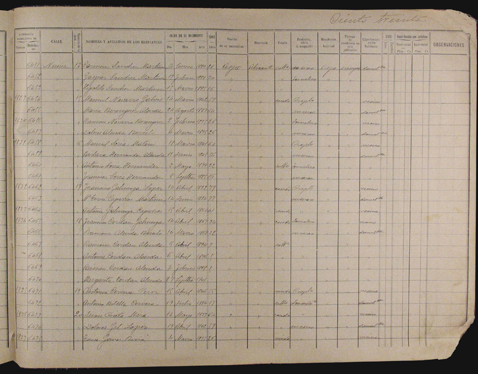 Hojas declaratorias por familias y Padrón de habitantes, 1877