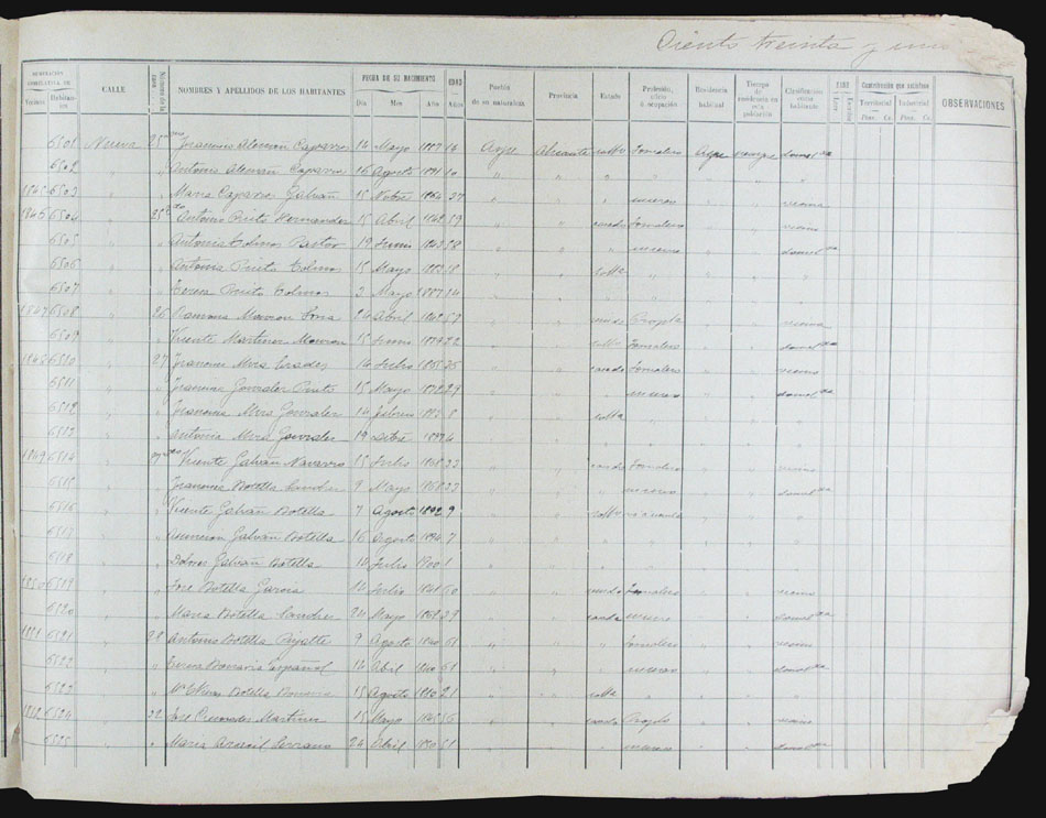 Hojas declaratorias por familias y Padrón de habitantes, 1877