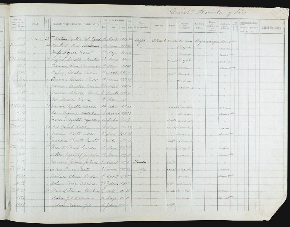 Hojas declaratorias por familias y Padrón de habitantes, 1877