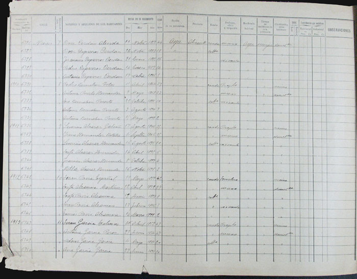 Hojas declaratorias por familias y Padrón de habitantes, 1877