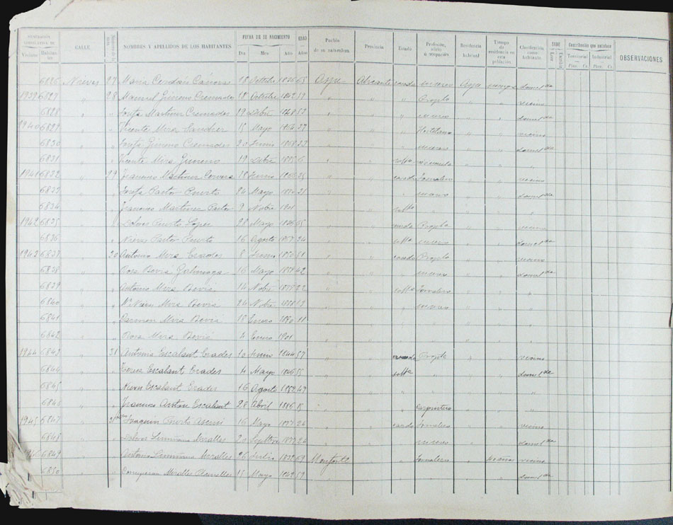Hojas declaratorias por familias y Padrón de habitantes, 1877
