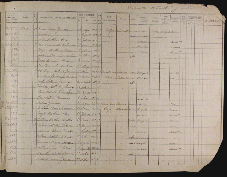 Hojas declaratorias por familias y Padrón de habitantes, 1877