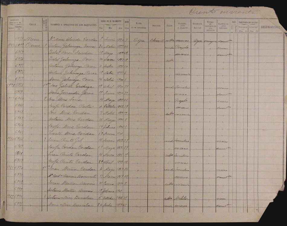 Hojas declaratorias por familias y Padrón de habitantes, 1877