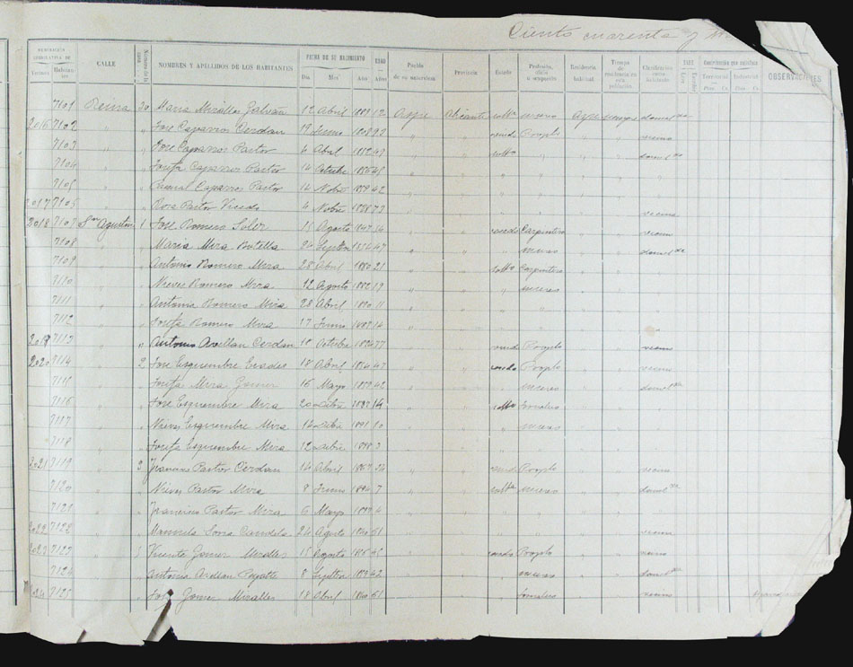 Hojas declaratorias por familias y Padrón de habitantes, 1877