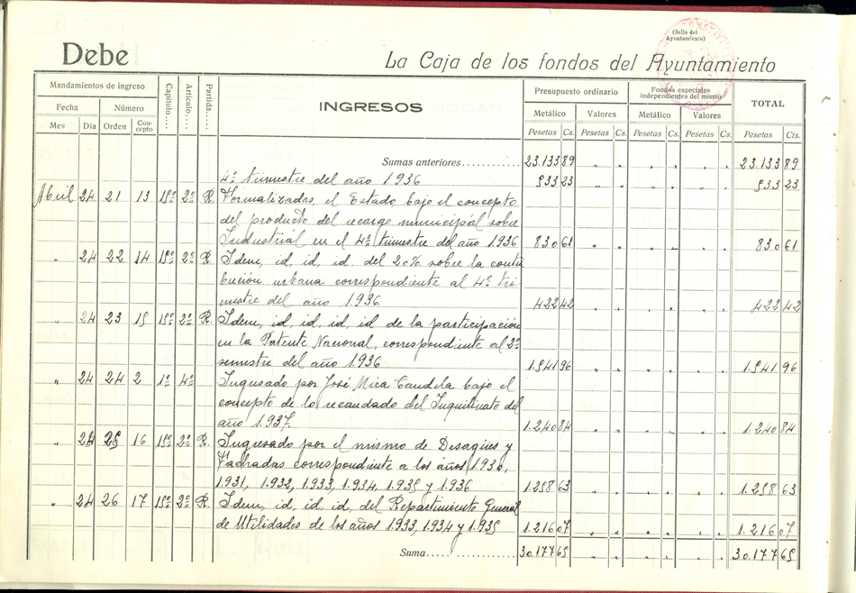 Libro de Caja, 1937-1938