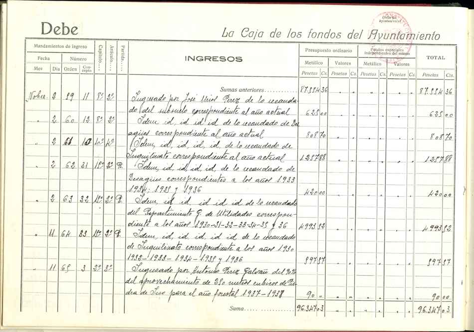 Libro de Caja, 1937-1938
