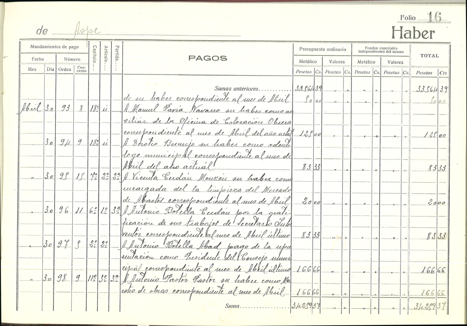 Libro de Caja, 1937-1938
