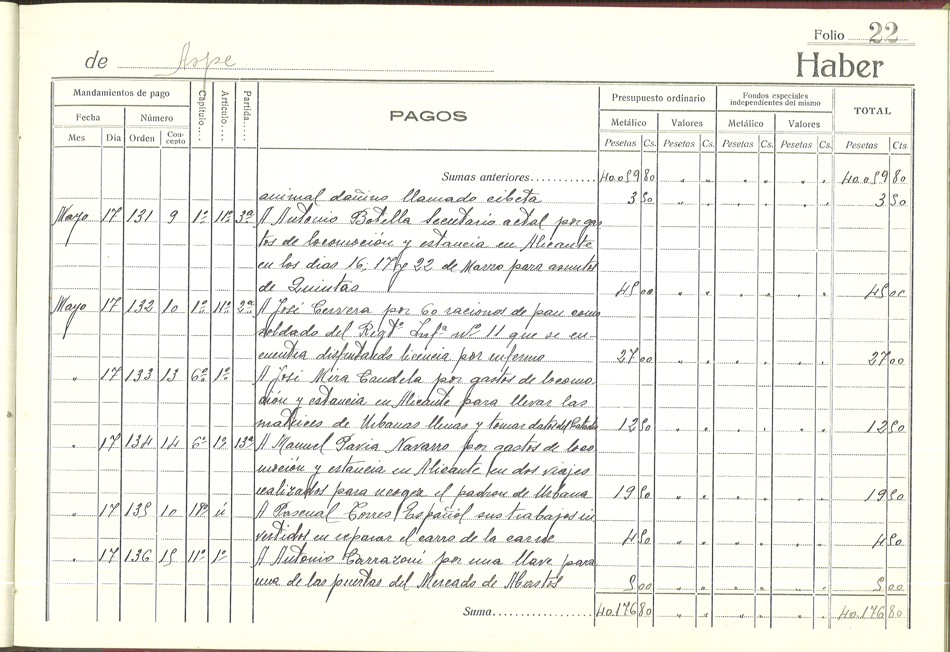 Libro de Caja, 1937-1938