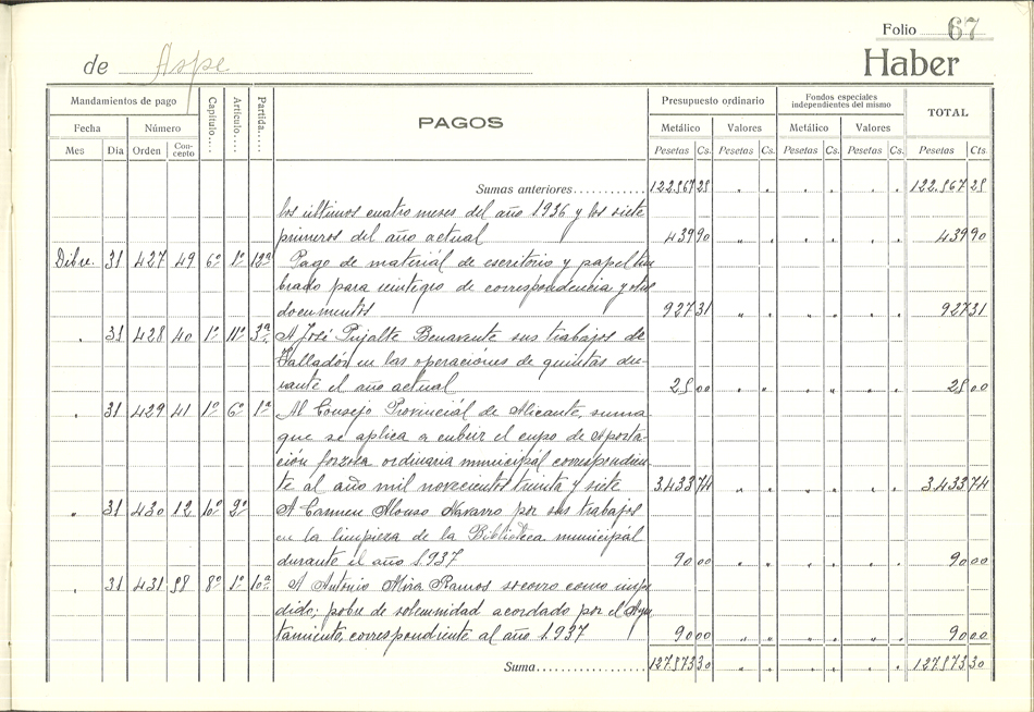 Libro de Caja, 1937-1938