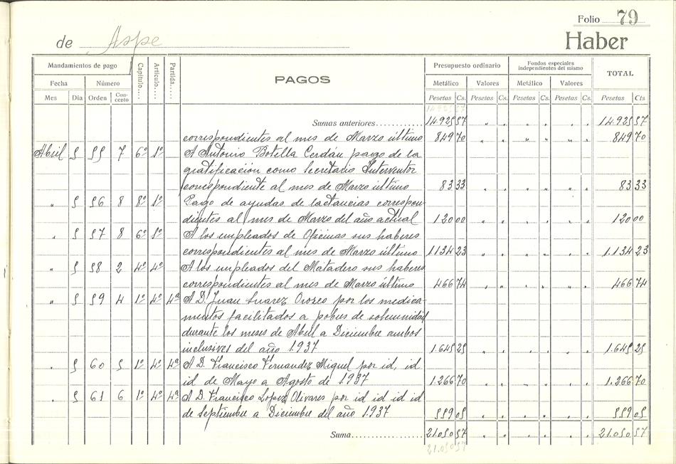 Libro de Caja, 1937-1938