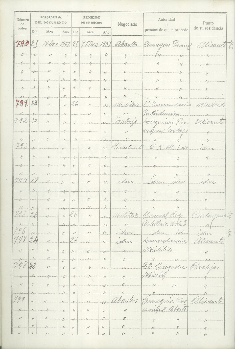 Libro-Registro de Entrada de Documentos, 1937-1938