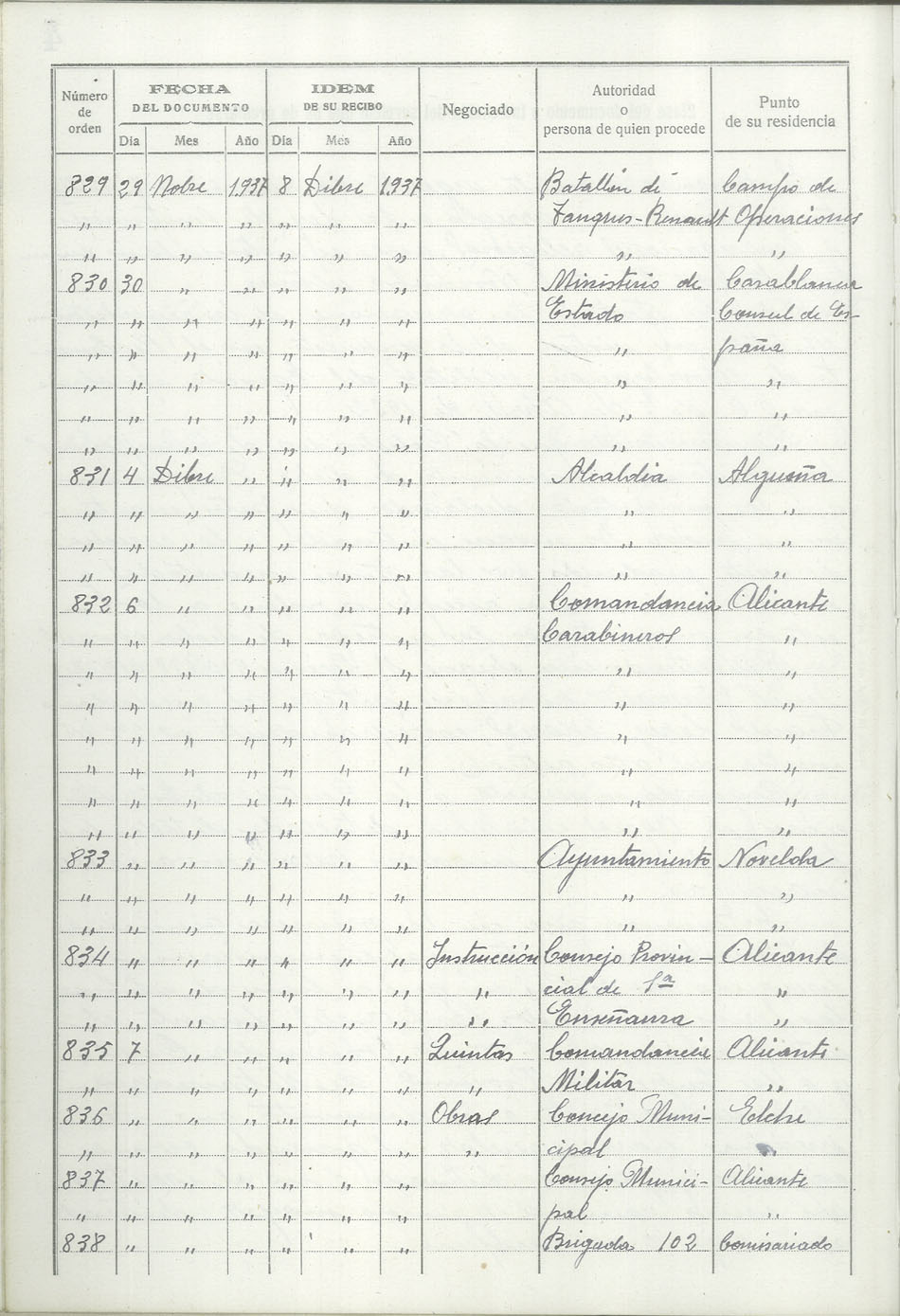 Libro-Registro de Entrada de Documentos, 1937-1938