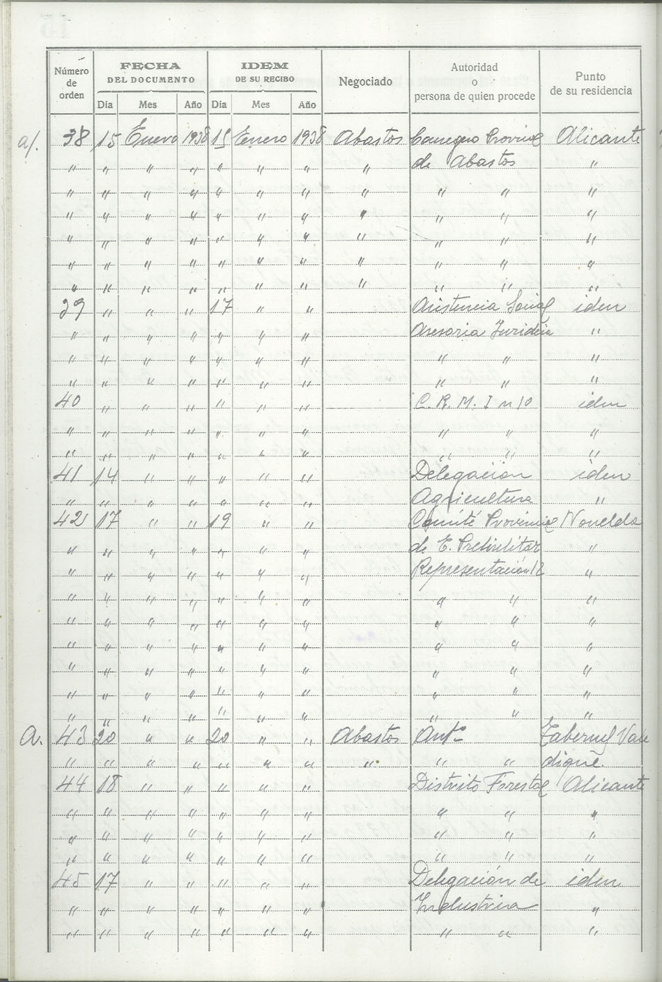 Libro-Registro de Entrada de Documentos, 1937-1938