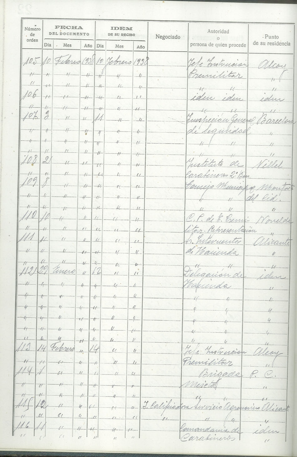 Libro-Registro de Entrada de Documentos, 1937-1938