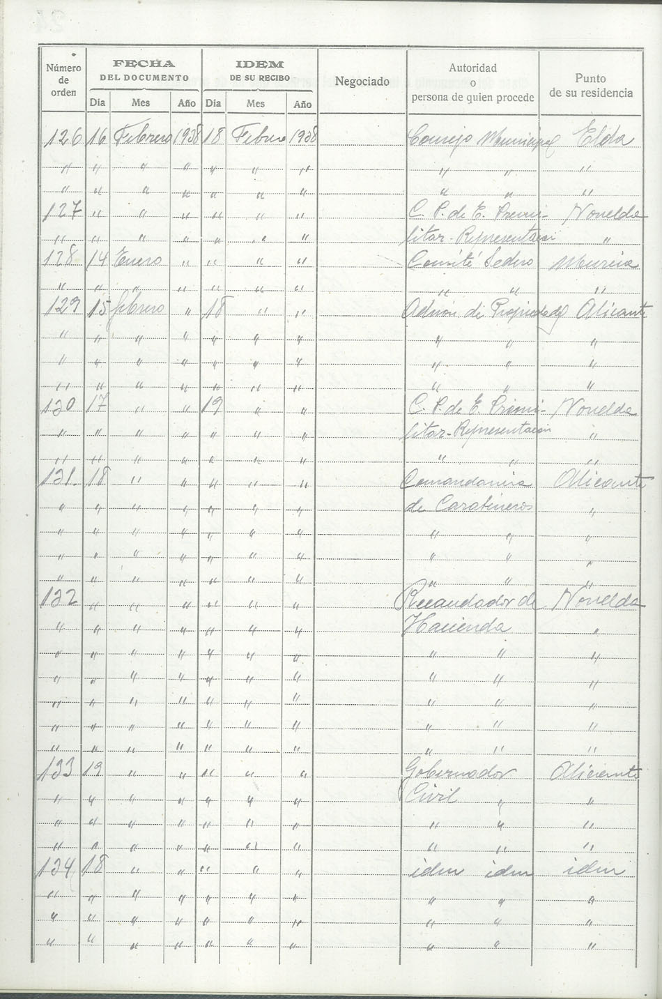Libro-Registro de Entrada de Documentos, 1937-1938
