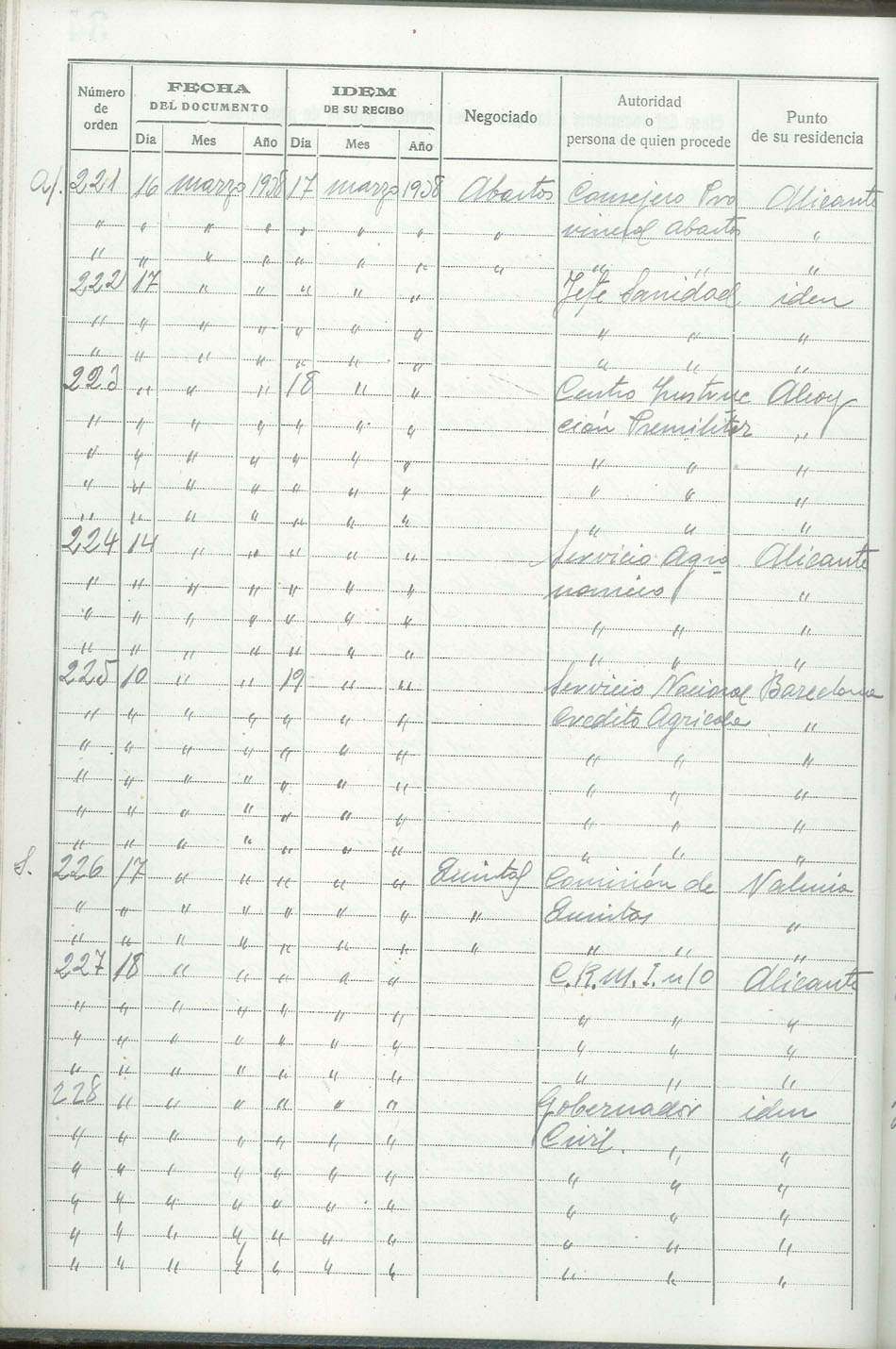 Libro-Registro de Entrada de Documentos, 1937-1938