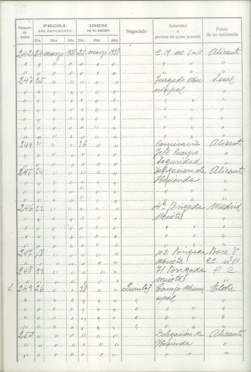 Libro-Registro de Entrada de Documentos, 1937-1938