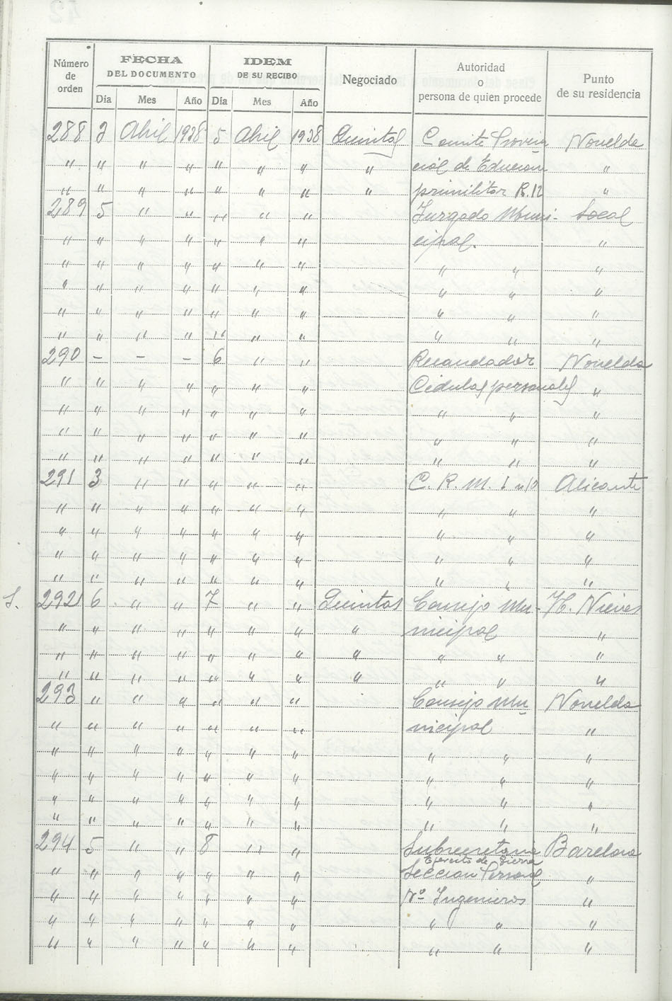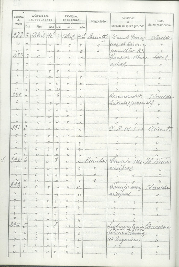 Libro-Registro de Entrada de Documentos, 1937-1938