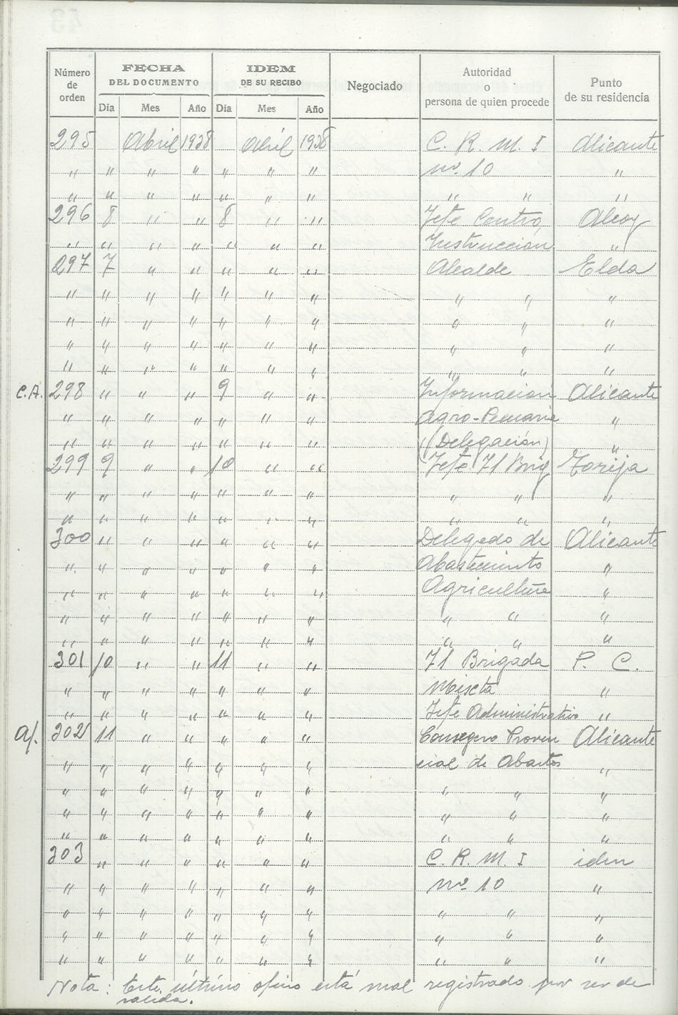Libro-Registro de Entrada de Documentos, 1937-1938