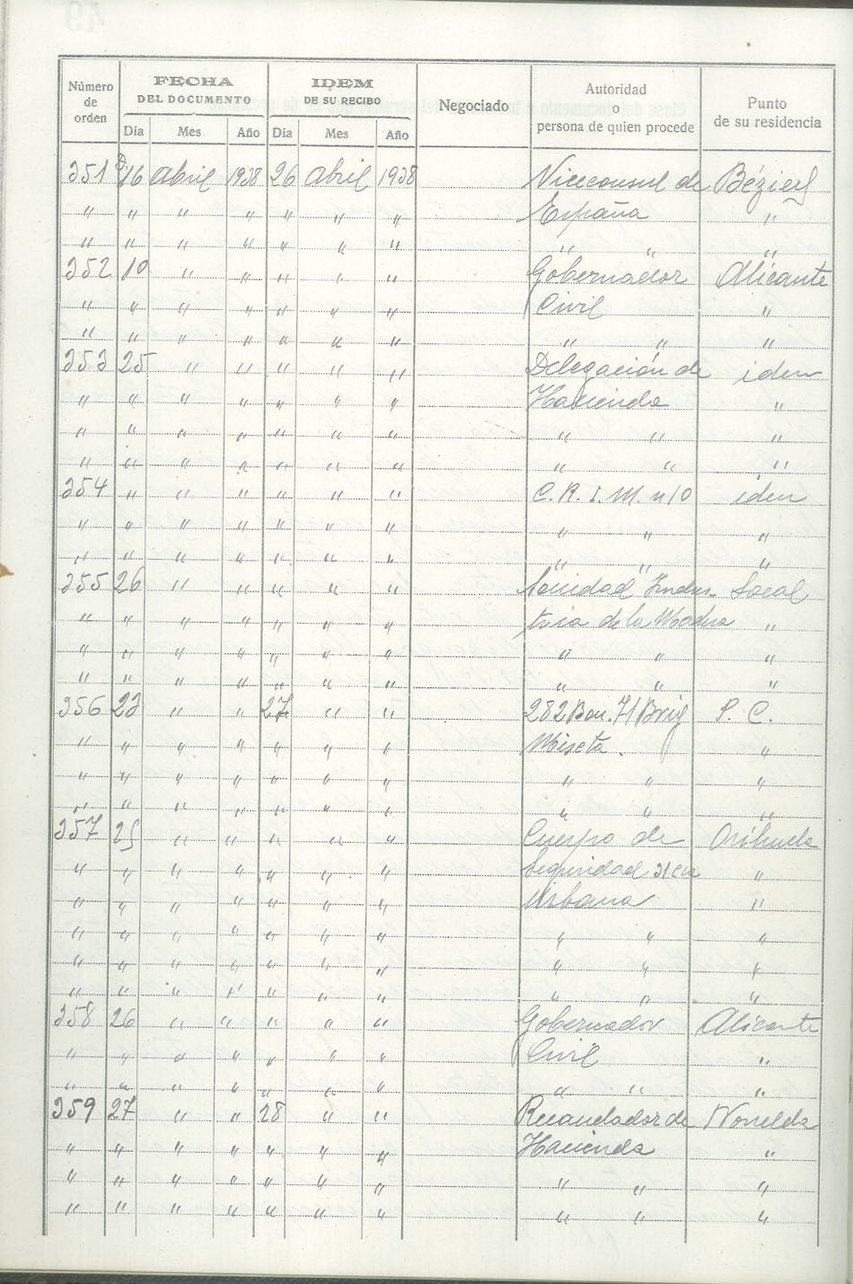Libro-Registro de Entrada de Documentos, 1937-1938