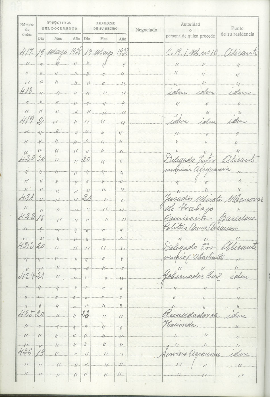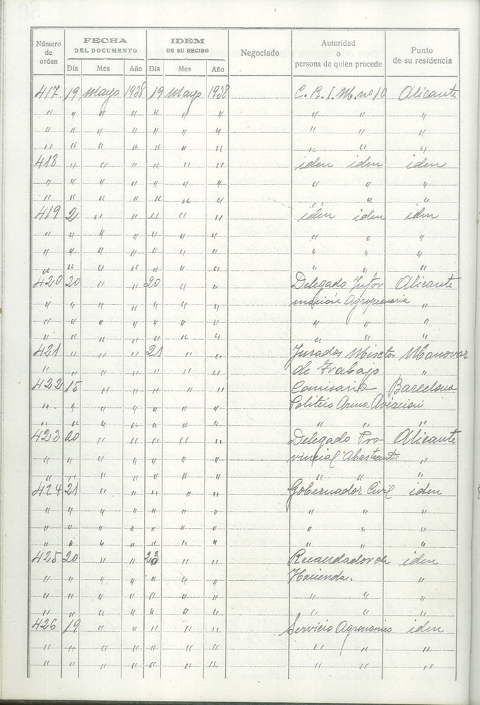 Libro-Registro de Entrada de Documentos, 1937-1938