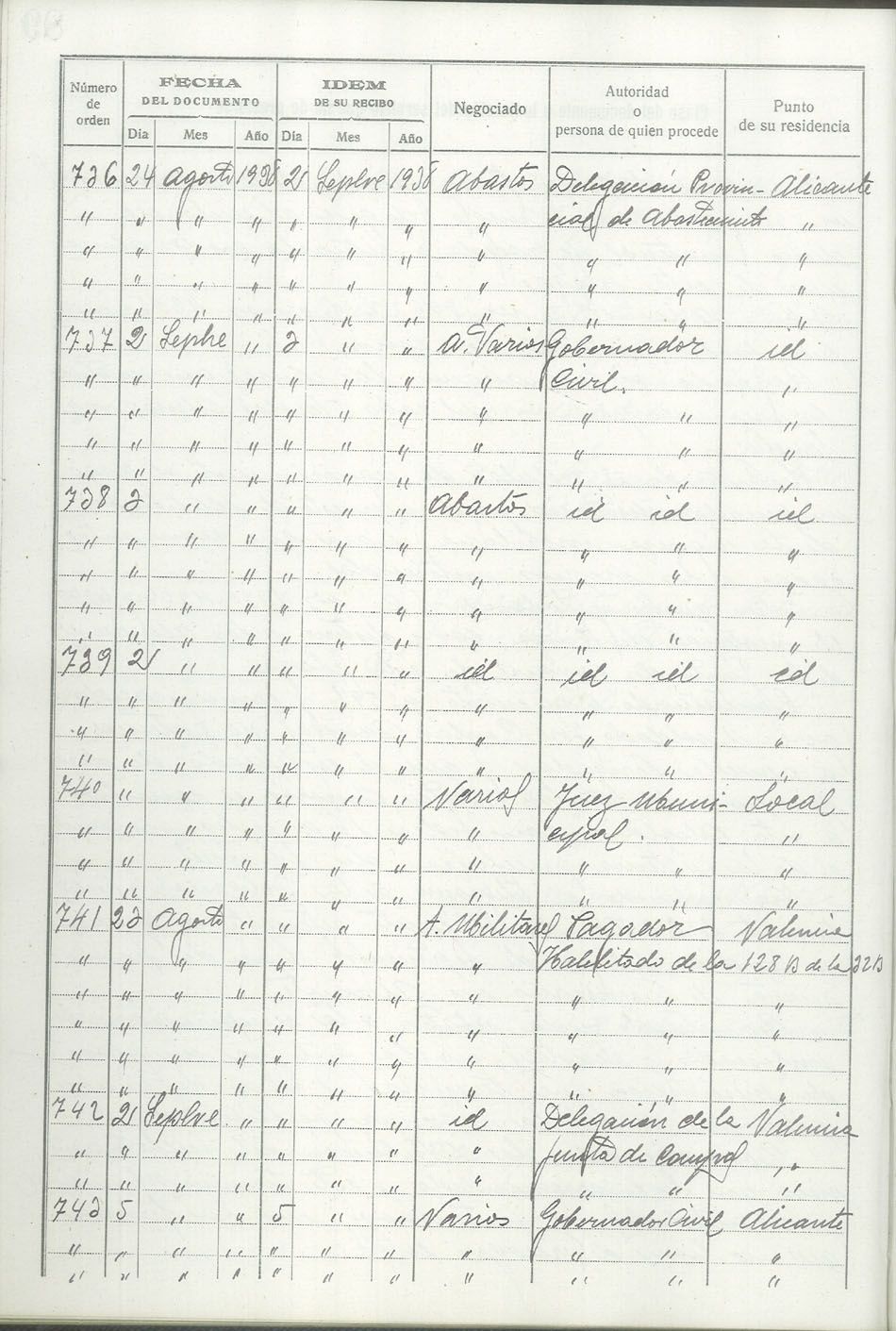 Libro-Registro de Entrada de Documentos, 1937-1938